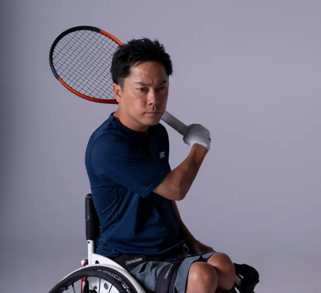 20歳の時に車いすテニス(クァードクラス)を始める。